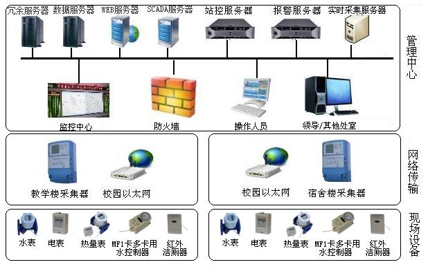 系統(tǒng)概述 基于物聯(lián)網(wǎng)、大數(shù)據(jù)、云計算及移動互聯(lián)網(wǎng)等新興技術的快速發(fā)展和不斷融合,新天科技順應市場潮流,在自身現(xiàn)有的技術基礎上,開拓性地開發(fā)推出針對校園中電量消耗、燃料消耗、熱量消耗、冷量消耗及水資源消耗的數(shù)據(jù)采集、傳輸及統(tǒng)計分析的智慧校園節(jié)能監(jiān)管系統(tǒng)。該系統(tǒng)使學校能夠有效建立節(jié)能工作的長久機制,推進和深化節(jié)約型校園的建設,實現(xiàn)校園建筑設施能源高效利用和管理系統(tǒng)的建設。 智慧校園節(jié)能監(jiān)管系統(tǒng)由計量表具、數(shù)據(jù)采集及轉換裝置、數(shù)據(jù)傳輸網(wǎng)絡、數(shù)據(jù)中轉站、數(shù)據(jù)服務器、管理軟件組成。該系統(tǒng)主要用于對學校建筑能耗進行分類分項計量、數(shù)據(jù)統(tǒng)計、數(shù)據(jù)分析、節(jié)能分析及節(jié)能指標管理。系統(tǒng)具備能耗數(shù)據(jù)實時采集和通訊、遠程傳輸、自動分類統(tǒng)計、數(shù)據(jù)分析、指標比對、圖表顯示、報表管理、數(shù)據(jù)儲存、故障自動上傳等功能,為校園節(jié)能建設提供管理依據(jù)。