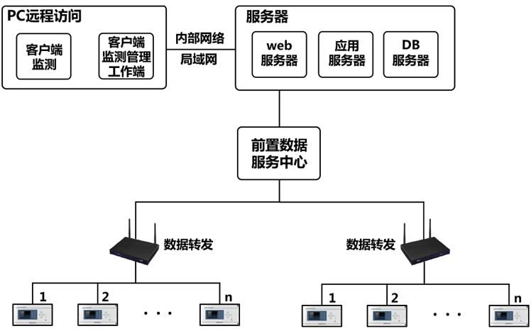 采用面向?qū)ο蟮膯卧O(jiān)控模式,各個(gè)監(jiān)測單元與監(jiān)控中心組成監(jiān)測系統(tǒng),對于監(jiān)測數(shù)量可以按